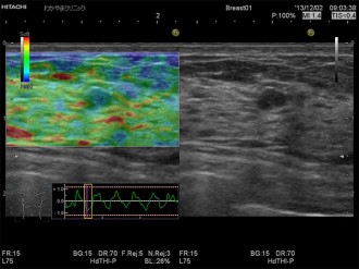 エラストグラフィとは、超音波検査でしこりの硬さを画像化する技術です。