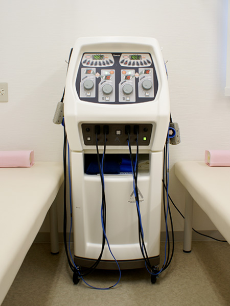 また、光線治療と同時に干渉波電流治療も行うことができ、光線と電流の相乗効果が期待できます。